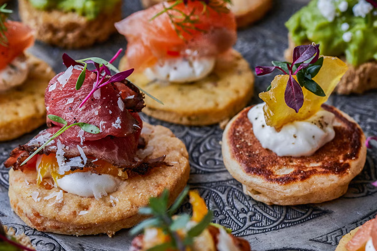 Bobler: Blanc de Blancs eller Extra Brut. Skarp syre, fine bobler og citrus – perfekt til rå fisk og risens sødme. Løfter uden at overdøve.