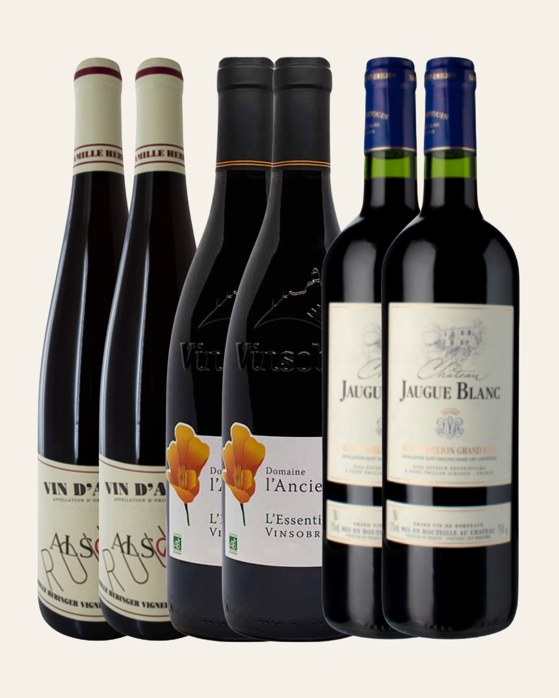 En rødvinekasse med seriøst value for money: tre forskellige profiler, der rammer bredt og smager fantastisk. Du får en frisk og let Pinot Noir fra Alsace, en saftig og solmoden Rhône-vin med varme og frugt – og en klassisk Bordeaux med struktur og dybde. En perfekt kombination af stil, kvalitet og pris, hvor hver flaske leverer mere end man forventer.